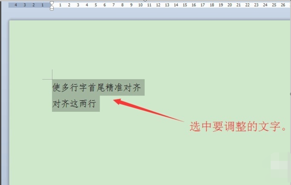 1、打开word2007文档,输入文字选中需要调整的文字。