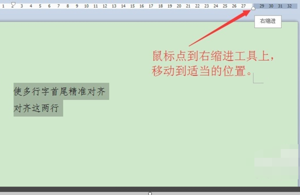 3、鼠标点住右缩进工具调整右侧位置边界。