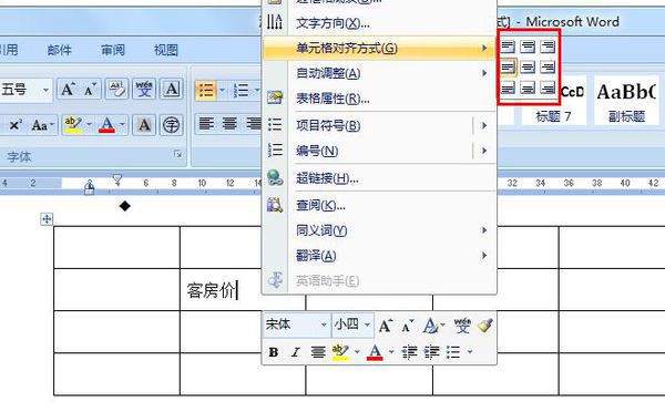 1、选中表格,右键打开设置菜单,点击“单元格对齐方式”,设置框,选中“水平居中”。