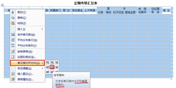 第一种表格文字快捷居中方法,选择你要居中的表格,可以选择当个或者全部,然后点击鼠标右键,选择右键菜单下的单元格对齐方式中,选择九种对齐方式最中间的一个就可以了。