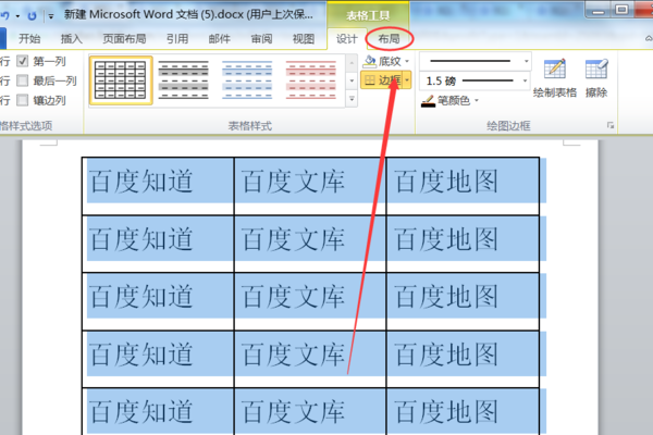 1、在 Word 中新建一个表格,Word 将会显示“表格工具”动态工具栏。
