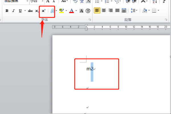 3、点击上标图标后,就会发现数字2在字母的右上方了,组成了单位平方米;