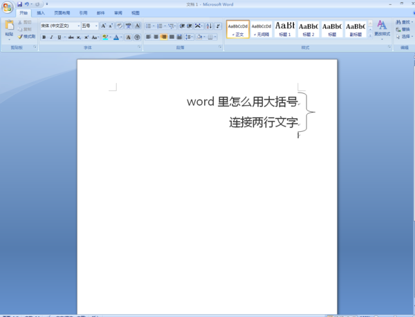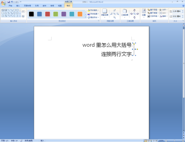 2.之后光标变成黑色十字,鼠标左键拖动光标即可画出大括号;