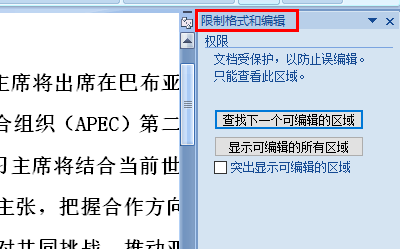 2)WORD右侧弹出“限制格式和编辑”的标签页。