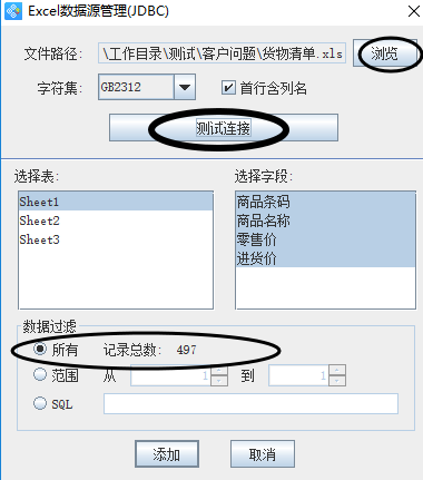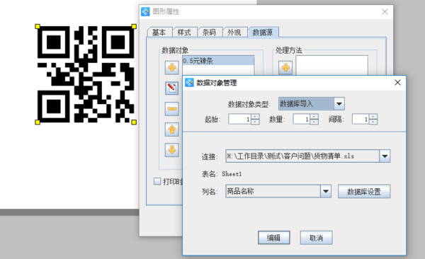 如果还有其他的信息也要在二维码上显示的话,就在点一下“添加”按钮,重新选择数据库导入-列名