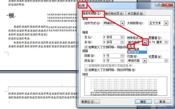 方法1、光标放在该段落中,然后拖拽横标尺上的悬挂滑块(左下角的滑块