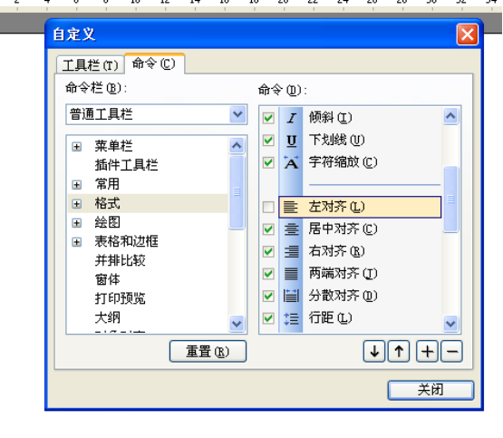 右键单击菜单栏/自定义/命令/格式/左对齐勾去掉即可