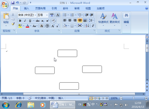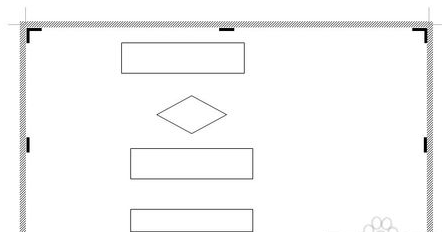 接下来我们开始绘制流程图的框架。所谓框架就是画出图形、把图形大致布局并在其中输入文字。在这里大家可以体会到,如果已经作好了草图,这里的操作将是比较轻松的,如果在这里边想边画,可能会耽搁很多时间。