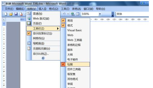 新建一个word 文档,通过“视图”-“工具栏”-“绘图”,如下图1,显示“绘图工具栏”