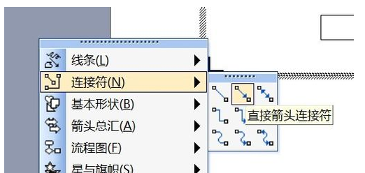 1. 选择窗口底部的“自选图形”按钮,在弹出的列表依次选择“连接符→直箭头连接符”。