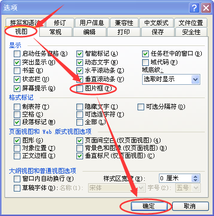 2、在“高级”中取消“显示图片框”即可。