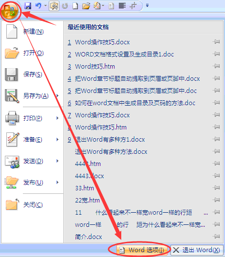 1、先点击Word界面左上角的office图标,然后再点击“Word选项”。