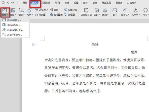 2、接下来在上方工具栏中选择“插入”-“图片”。