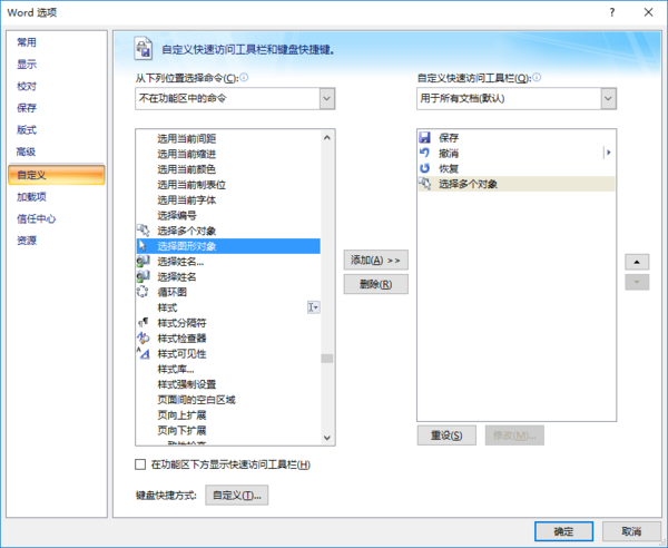 这个功能要在Word2013版本可以用,Word2007有这个功能但不能用在图片上,Word2010我不太清楚。点左上角的Word图标,选择右下角的Word选项,选择“自定义”,把“常用命令”改成“不在功能区中的命令”,然后按拼音顺序找到“选择多个对象”,加到右边的默认工具栏中,这样在左上角的工具栏中会出现一个“选择多个对象”图标,按这个图标显示所有图片对象,将他们一起选中,然后设置属性即可。