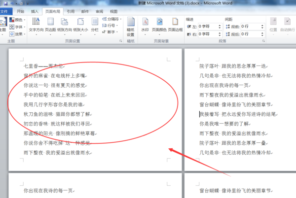 3、编辑好内容以后,再将鼠标的光标移动到第三页的端部;