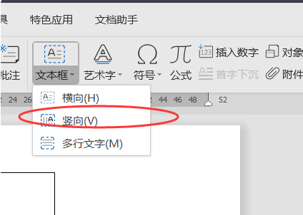4、再选择“竖向”文本框。