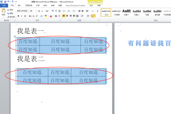 1、打开需要操作的WORD文档,按住“Ctrl”键,一次选中需要调整的表格。