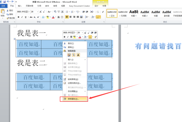 2、在选中的区域内点击鼠标右键,选择“表格属性”。