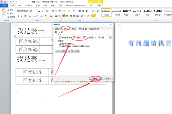 3、在“行”标签输入行高,并点击确定按钮。