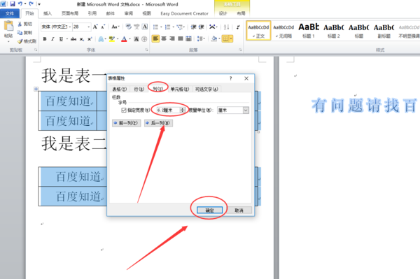 4、在列标签也输入合适的列宽并点击确定按钮即可。