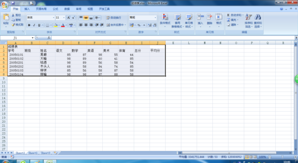 1、打开“成绩表”作为活动工作表。