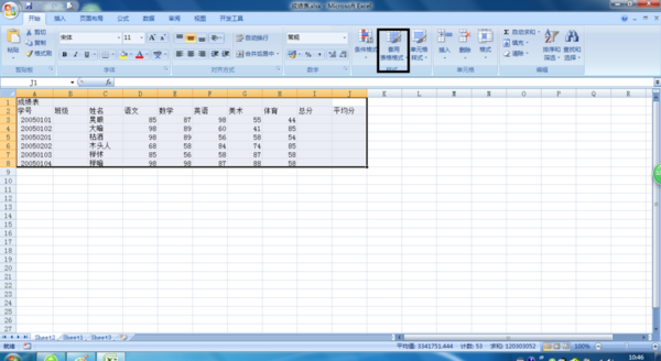 2、先选中“相应的数据”再在菜单栏上的“开始”选项卡中找到“套用表格格式”按钮。