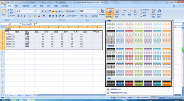 3、点击“套用表格格式”后弹出下拉菜单中选相对的套用表格格式。