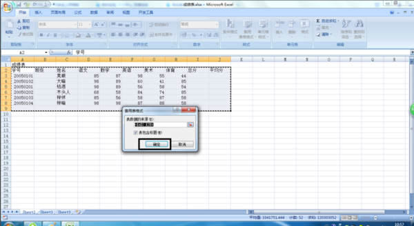 4、选定之后弹出“套用表格式”对话框点击“确定”按钮。