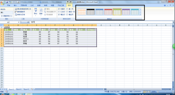 6、如果想换套用表格格式在菜单栏中点击“设计”选项卡中下有个“套用表格格式”列表格式样式。