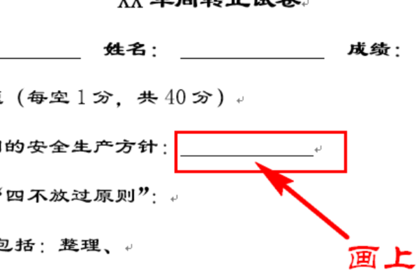 字体字号旁边有一个U下划线,选那个图标,再输入空格,就有填空用的下线了