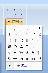 5、然后再插入选项卡里面找到特殊序号的功能区,点击符号那个按钮打开后选择更多;