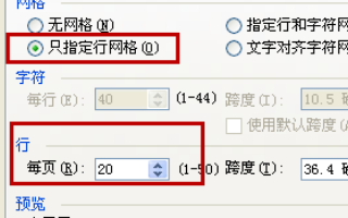 3、找到“文档网络”,选择“只指定行网络”,“每页20行”。