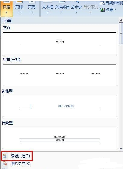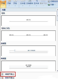 4、在弹出的菜单中选择编辑页眉,如下图;