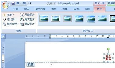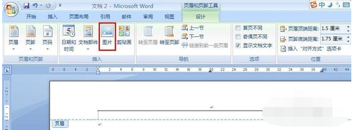 5、在页眉编辑状态选择“插入”区域内的“图片”选项,下图标红处;