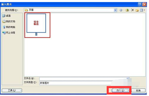 6、在弹出的界面里找到存放图片的位置并选择,点击“插入”完成插入图片的操作,如下图;