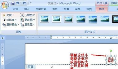 还是用你前面的加页眉方法插进图片后。双击该图片或点右键出来设置图片格式,点击版式,选择浮于文字上方或下方,点确定,然后拖动图片大小。欢迎采纳!