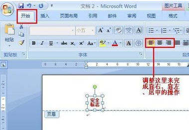 9、在图标选定状态下,在“开始”页“段落区域”选择居中、靠右、靠左的操作调整图标是否居中、靠右、靠左的操作,如图;