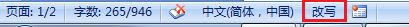 1、打开word,在页面下边有一行不引人注意的窄条,但却反映了页面上很多信息,其中就有当前是“插入”还是“改写”状态。见下图: