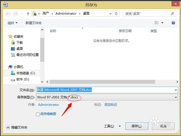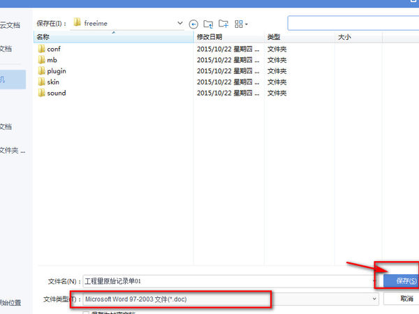 5、在弹出保存的对话框里选择保存位置,可以看到保存的文件类型为doc格式,点击保存。