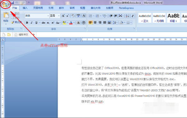 1、首先我们打开要转换的word文件,点击office图标。