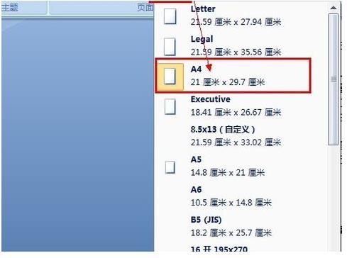 四、依次单击“页面布局,纸张大小,A4”,将电子板报设定为A4大小: