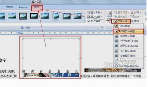 十一、选择其中一个图片,然后单击“格式,文字环绕,四周型环绕”。同样的方法设置另一张图片: