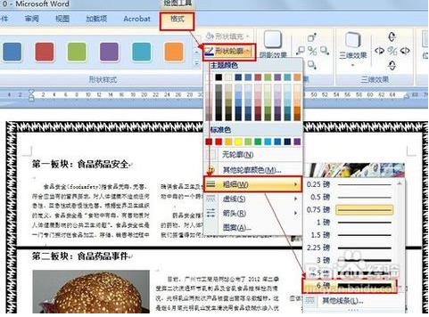 十五、选择画出的线条,然后依次单击“格式,形状轮廓,粗细,6磅”: