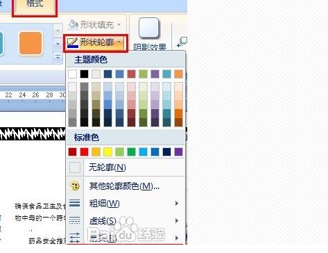 十六、继续选择线条,依次单击“格式,形状轮廓,图案”: