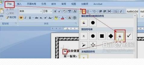 十八、在文章的大标题前增加项目符号。依次单击“开始,项目符号”,然后选择喜欢的单击: