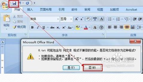 十九、单击“保存”。因为文档原始格式是txt,因此会有如下提示。单击“否”,弹出另存为对话框:
