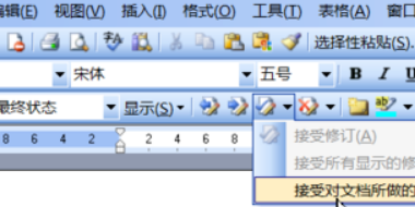 7、点击下拉菜单中的接受对文档所做的所有修订。则修订标记就被删除了。