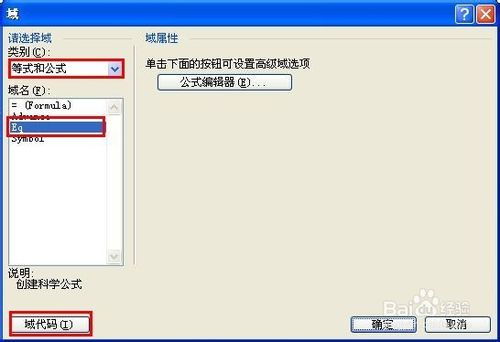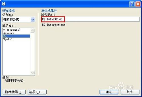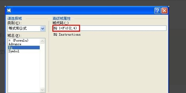 注意:上述域名称“EQ”与后面的域代码“\F(4,4)”之间需要有一个空格。