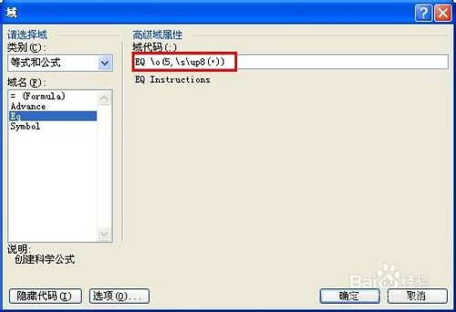 域代码内输入:EQ空格\o(5,\s\up8(•))