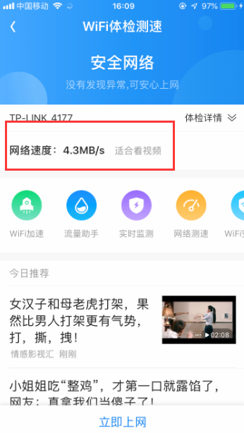 WiFi万能钥匙的测速也为用户提供了很大的方便,可以很直观的看到网速情况。可以为用户提供一些信息参考。